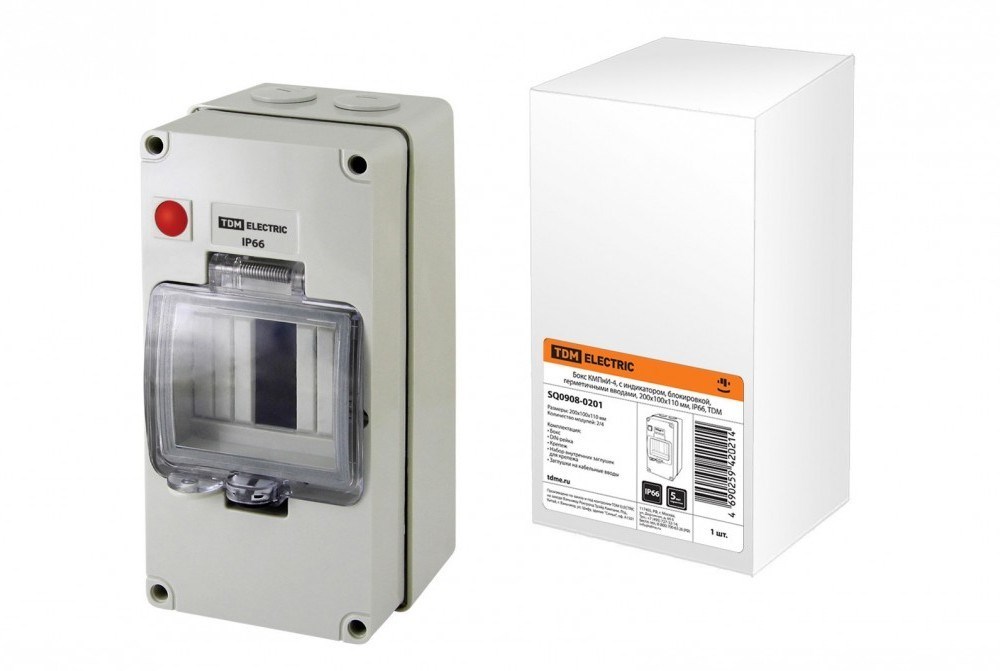 TDM Бокс КМПнИ-4, с индикатором, блокировкой, герметичными вводами, 200х100х110 мм, IP66, SQ0908-0201