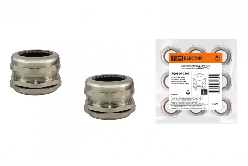 TDM Кабельный ввод-сальник латунный М 40 IP68 SQ0806-0309