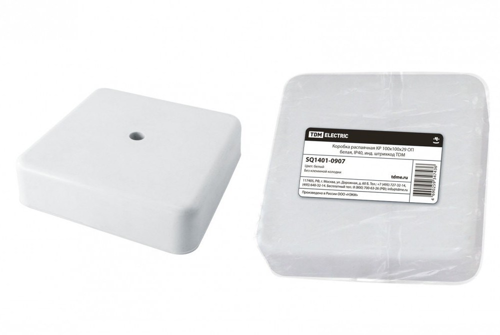 TDM Коробка распаячная КР 100х100х29 ОП белая, IP40, инд. штрихкод SQ1401-0907