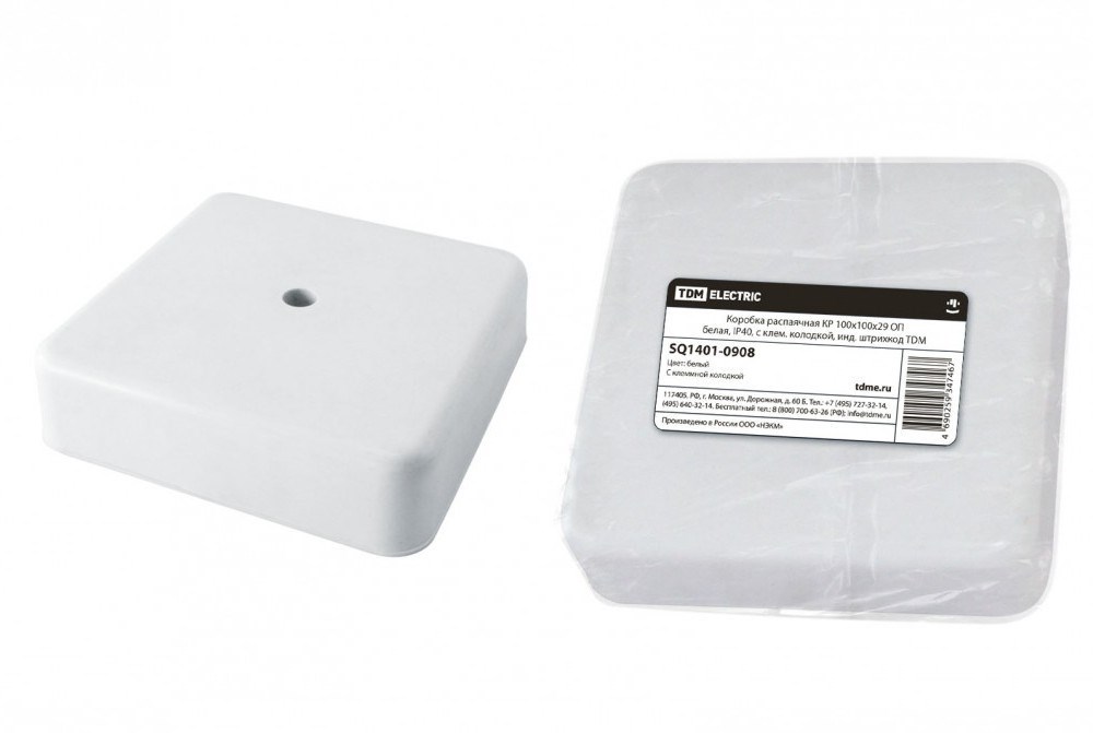 TDM Коробка распаячная КР 100х100х29 ОП белая, IP40, с клем. колодкой, инд. штрихкод SQ1401-0908