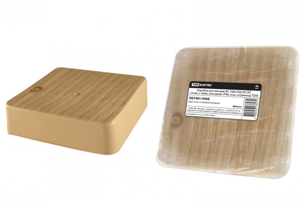TDM Коробка распаячная КР 100х100х29 ОП сосна, с клем. колодкой, IP40, инд. штрихкод SQ1401-0408