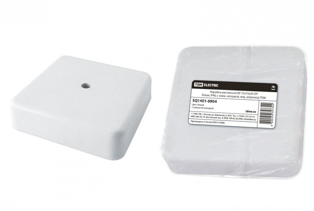 TDM Коробка распаячная КР 75х75х20 ОП белая, IP40, с клем. колодкой, инд. штрихкод SQ1401-0904