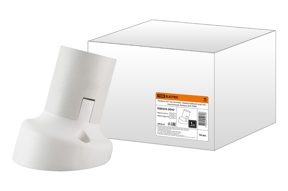 TDM Патрон Е27 настенный, термостойкий пластик, наклонный, белый, Б/Н SQ0335-0042