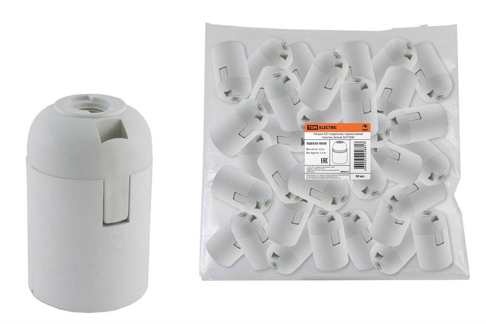 TDM Патрон Е27 подвесной, термостойкий пластик, белый, Б/Н SQ0335-0030