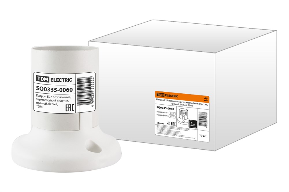 TDM Патрон Е27 потолочный, термостойкий пластик, прямой, белый SQ0335-0060