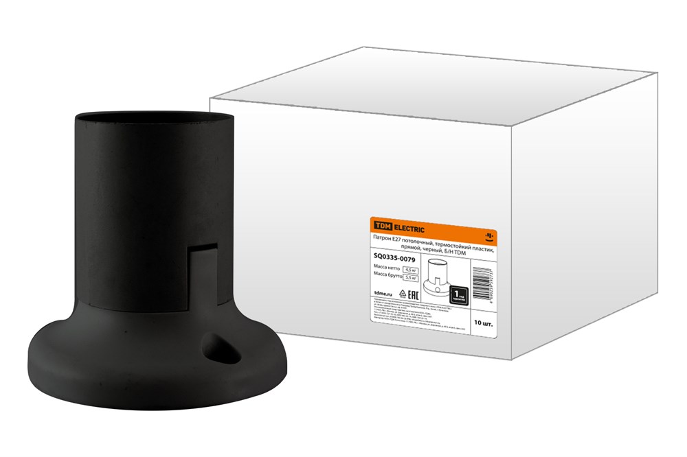 TDM Патрон Е27 потолочный, термостойкий пластик, прямой, черный, Б/Н SQ0335-0079