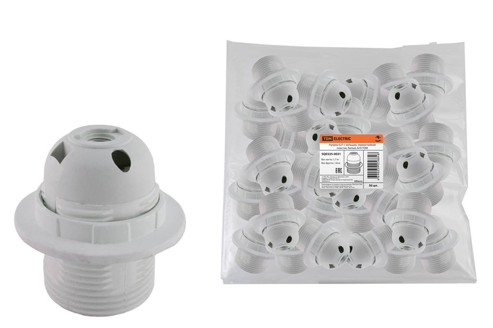 TDM Патрон Е27 с кольцом, термостойкий пластик, белый, Б/Н SQ0335-0031