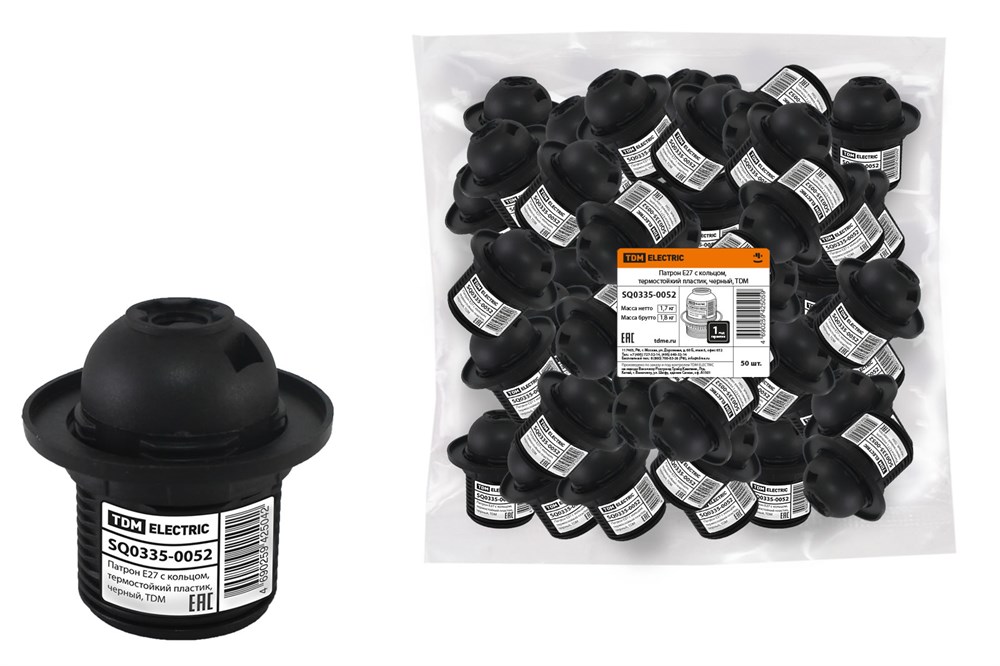 TDM Патрон Е27 с кольцом, термостойкий пластик, черный SQ0335-0052