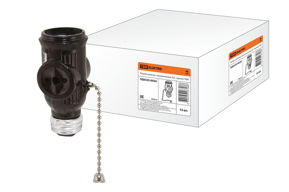 TDM Патрон-розетка карболитовый с выключателем, Е27, черный SQ0335-0026