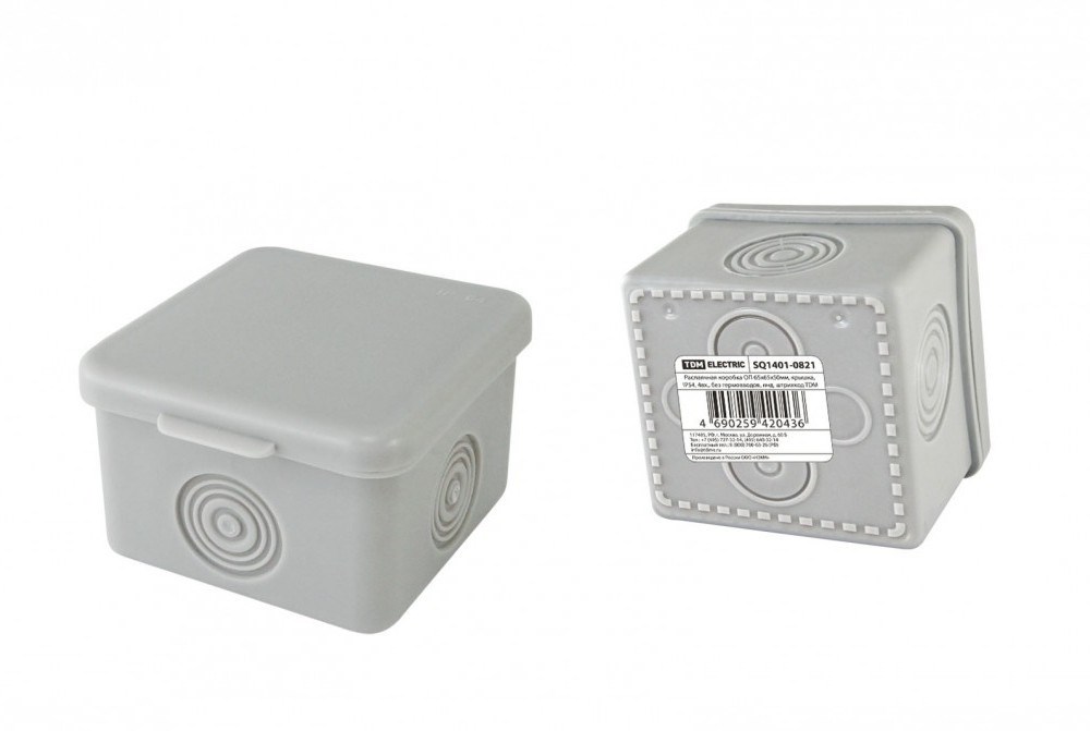 TDM Распаячная коробка ОП 65х65х50мм, крышка, IP54, 4вх., без гермовводов, инд. штрихкод SQ1401-0821