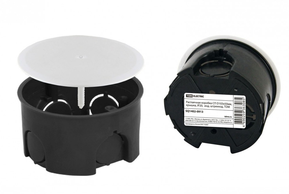 TDM Распаячная коробка СП D103х50мм, крышка, IP20, инд. штрихкод, SQ1402-0913