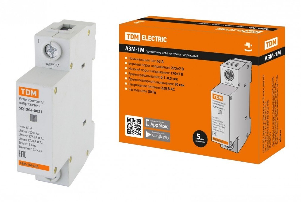 TDM Реле напряжения 1ф АЗМ-1М 1-модуль 63А-230В SQ1504-0021