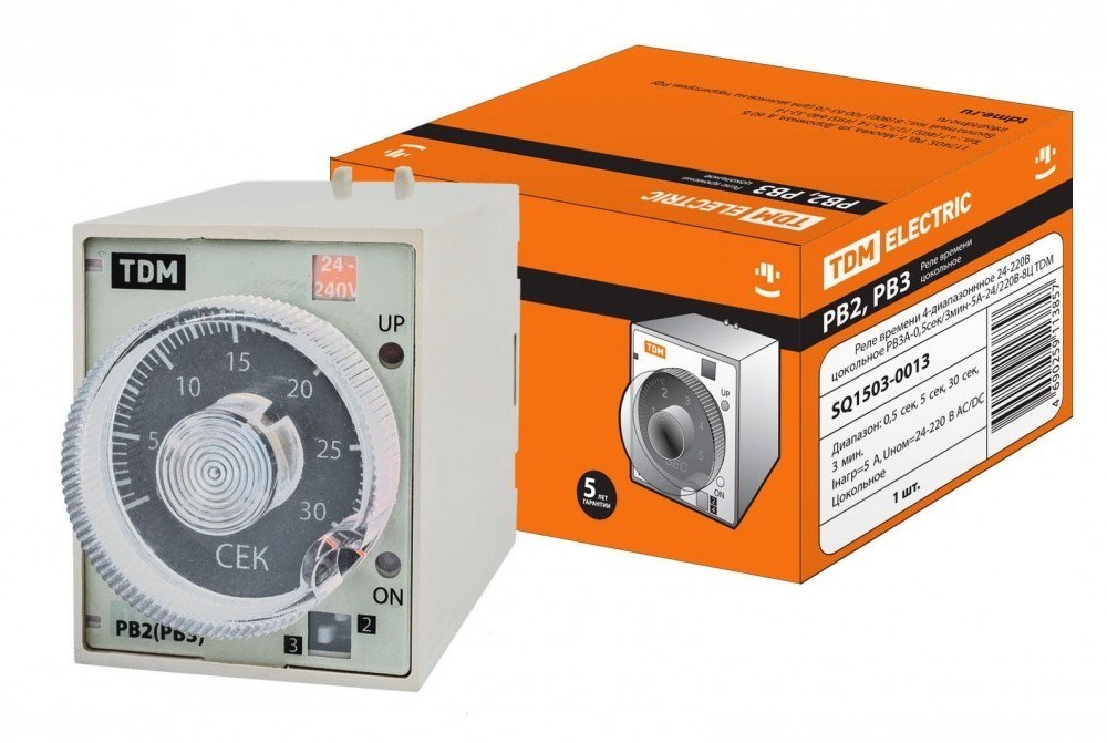 TDM Реле времени 4-диапазоннное 24-230В цокольное РВ3A-0,5сек/3мин-5A-24/230В-8Ц SQ1503-0013