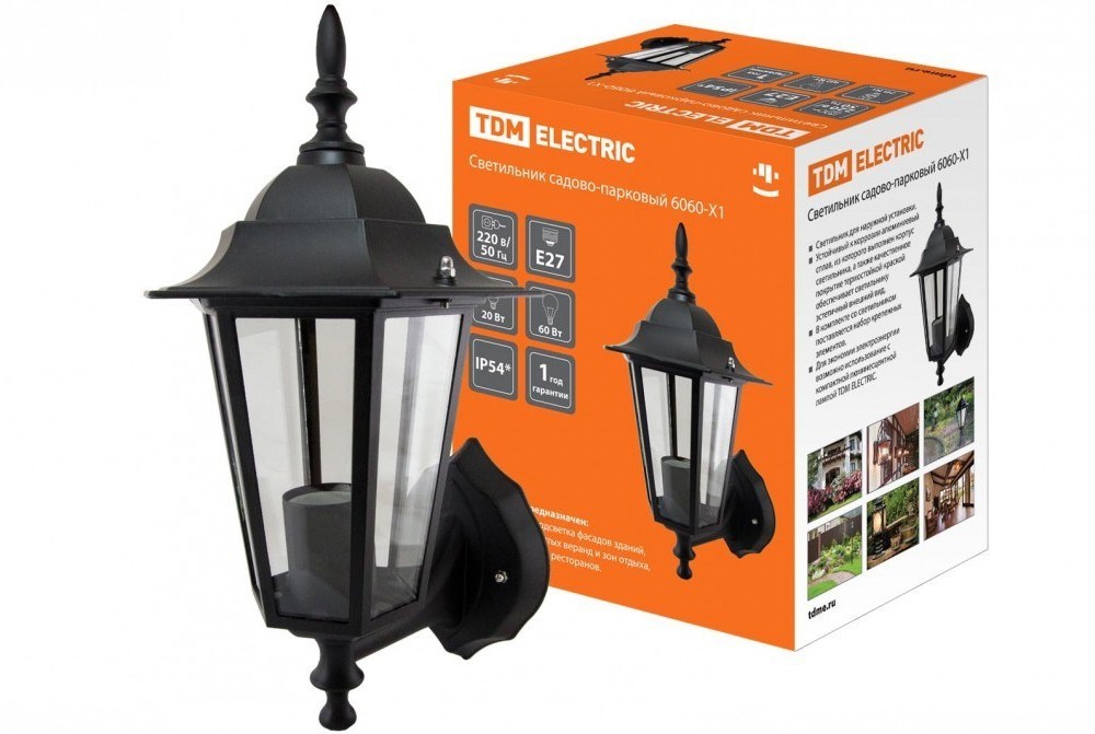 TDM Светильник 6060-01 садово-парковый шестигранник, 60Вт, вверх, черный SQ0330-0001