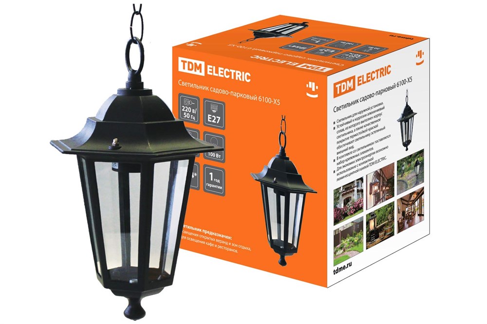TDM Светильник 6100-05 садово-парковый шестигранник, 100Вт, подвес, черный SQ0330-0010