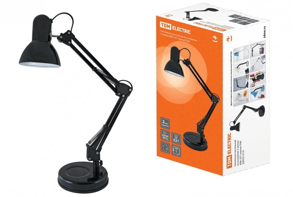 TDM Светильник настольный на основании 2 колена 60Вт, E27 черный SQ0337-0110