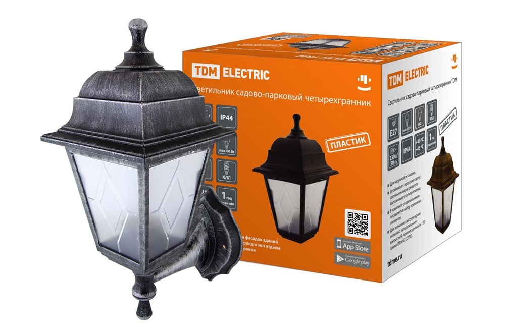 TDM Светильник садово-парковый НБУ 04-60-001 четырехгранник, настенный, пластик, расс.пластик, серебро SQ0330-0794
