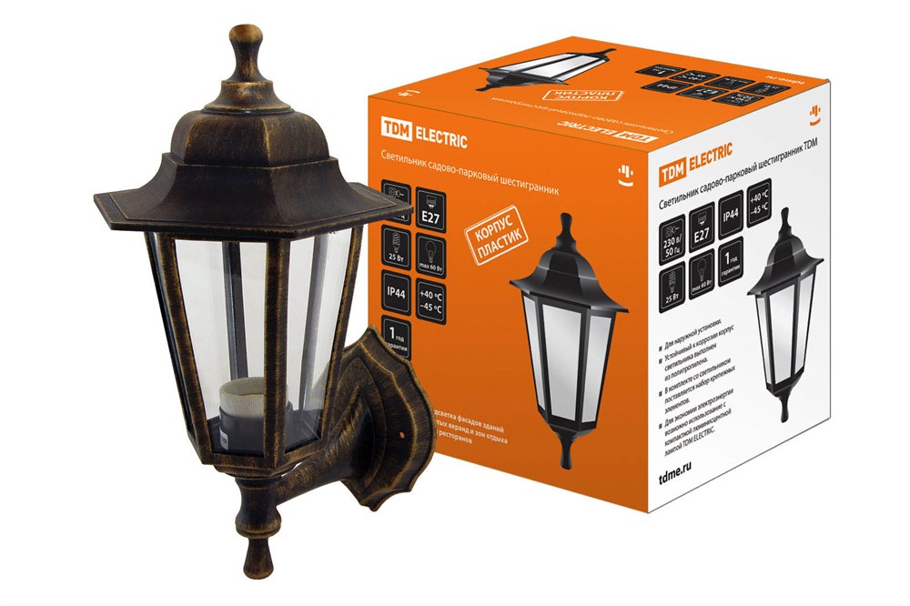 TDM Светильник садово-парковый НБУ 06-60-001 шестигранник, настенный, пластик, бронза SQ0330-0711