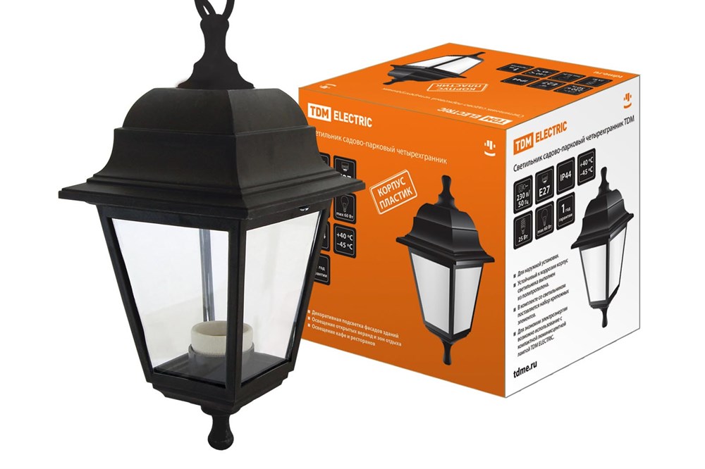 TDM Светильник садово-парковый НСУ 04-60-001 четырехгранник, подвес, пластик, черный SQ0330-0706