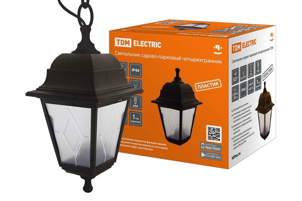 TDM Светильник садово-парковый НСУ 04-60-001 четырехгранник, подвес, пластик, расс.пластик, черный SQ0330-0766