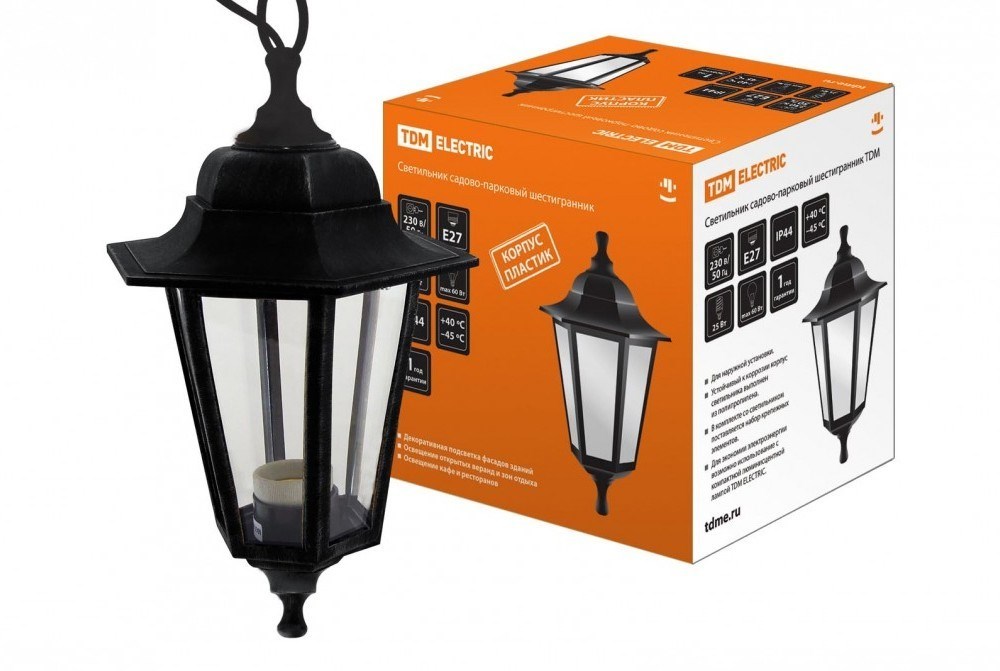 TDM Светильник садово-парковый НСУ 06-60-001 шестигранник, подвес, пластик, черный SQ0330-0703