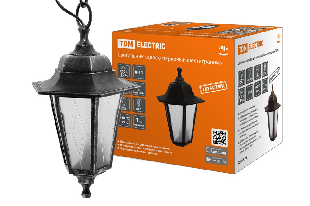 TDM Светильник садово-парковый НСУ 06-60-001 шестигранник, подвес, пластик, расс.пластик, серебро SQ0330-0793