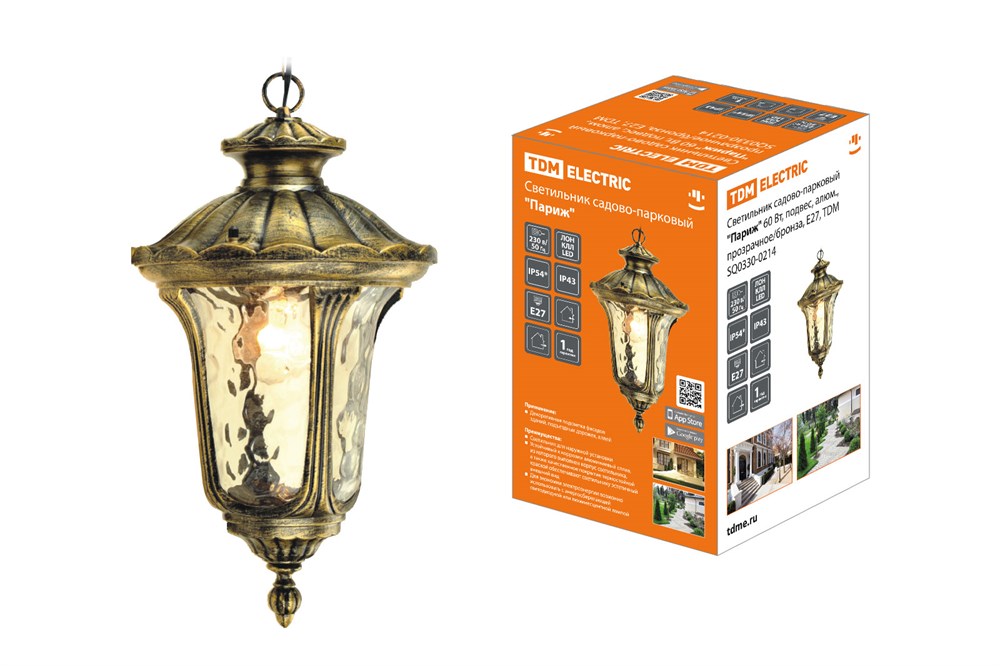 TDM Светильник садово-парковый "Париж" 60 Вт, подвес, алюм., прозрачное/бронза, Е27 SQ0330-0214
