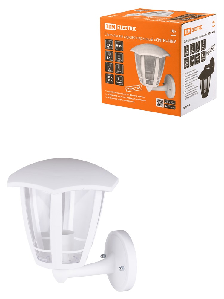 Назначение:br/Cветильники садово-парковые серии Сити предназначены для декоративной подсветки: фасадов зданий, приусадебных участков, террас, зон отдыха, парков, коттеджей.br/Преимущества:br/Прочный корпус из полипропилена не подвержен коррозии и выгоранию.Рассеиватель из поликарбоната отличается атмосферостойкостью, хорошими физико-механическими свойствами и высокой светопроницаемостью.Высокая степень защиты светильника от пыли и влаги IP44.Светильники представлены в трех корпусах: НБУ настенный (направление плафона вверх и вниз), НТУ цокольный венчающий (напольные и напольные на стойке), НСУ подвесной.Каждый светильник упакован в индивидуальную коробку с необходимой информацией об изделии и штрихкод EAN-13.br/Конструкция:br/Корпус изготовлен из полипропилена.Рассеиватель из поликарбоната.Патрон пластиковый Е27.br/