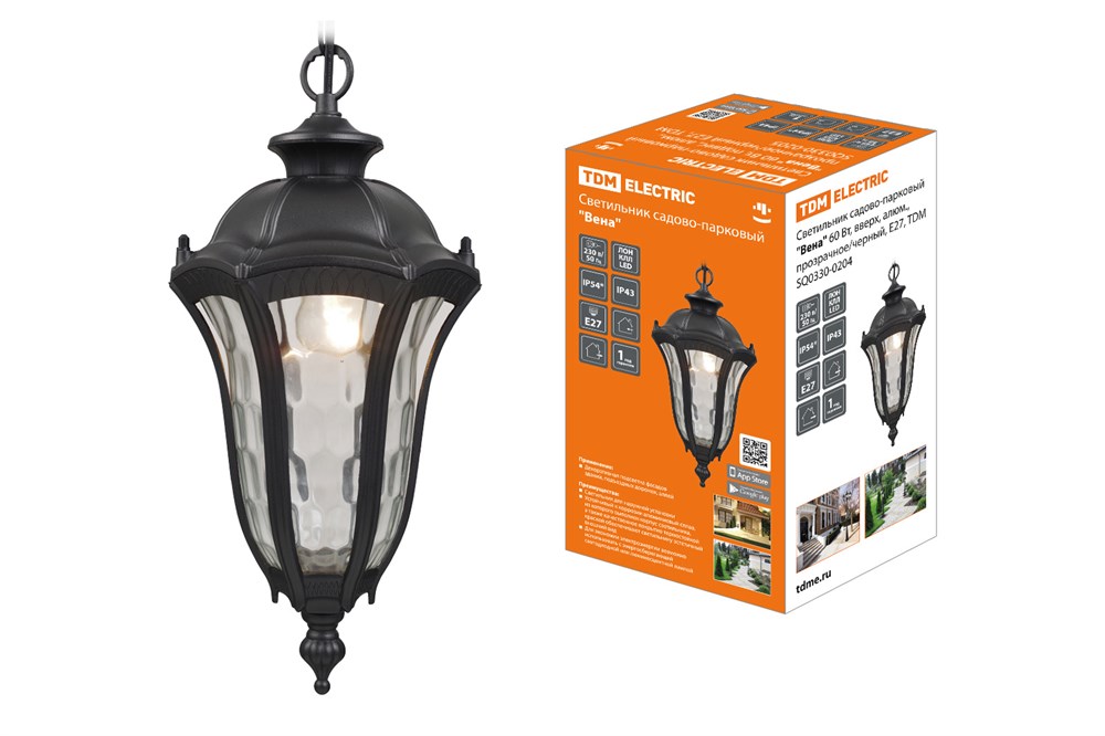 TDM Светильник садово-парковый "Вена" 60 Вт, подвес, алюм., прозрачное/черный Е27 SQ0330-0205