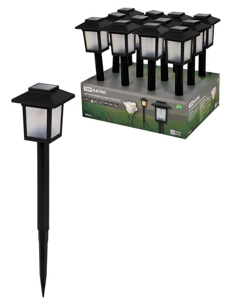 TDM Светильник СП-337 на солнечной батарее, 7х7х34 см, пластик, черный,10 LED, ДБ SQ0330-0188