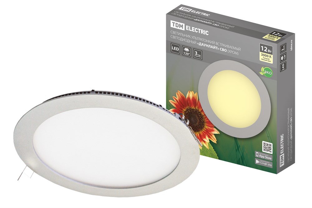 TDM Светильник ультратонкий встраиваемый светодиодный "Даунлайт" СВО (хром) 12 Вт 3000К SQ0329-0013