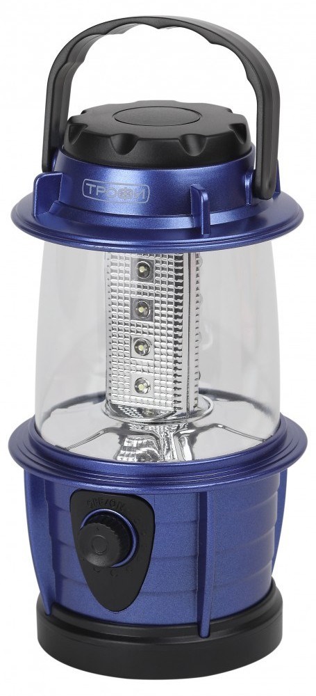 ТРОФИ КВ-101 - кемпинговый светодиодный фонарь в стильном корпусе оттенка синий металлик. Работает от 3 пальчиковых батареек (3 х АА). Оснащён диммером для плавной регулировки яркости света. Имеет удобную ручку для переноса и подвеса. 12 ярких светодиодов нового поколения равномерно распределены по всем сторонам светильника, что позволяет создать качественное объёмное освещение. Прекрасный вариант для походов, отдыха на природе, для дачи, бытовых, строительных и ремонтных работ. От одного комплекта алкалиновых элементов питания непрерывно светит 10 часов. Яркая фирменная упаковка и эффектное оформление фонаря делают ТРОФИ КВ-101 универсальным подарком к любому празднику для любого человека.