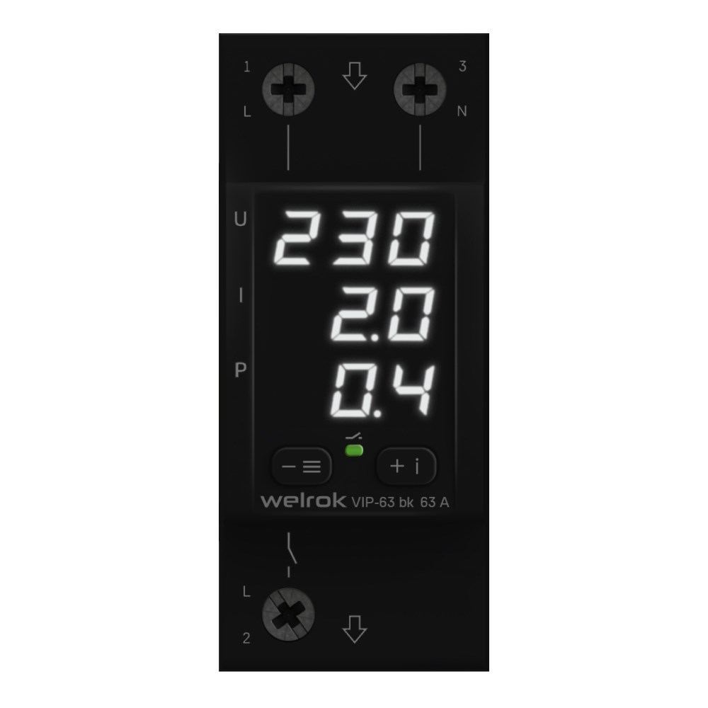 Welrok VIP-63 bk Реле напряжения 63 А (max 80 A), 13 900 ВА 4660251140663