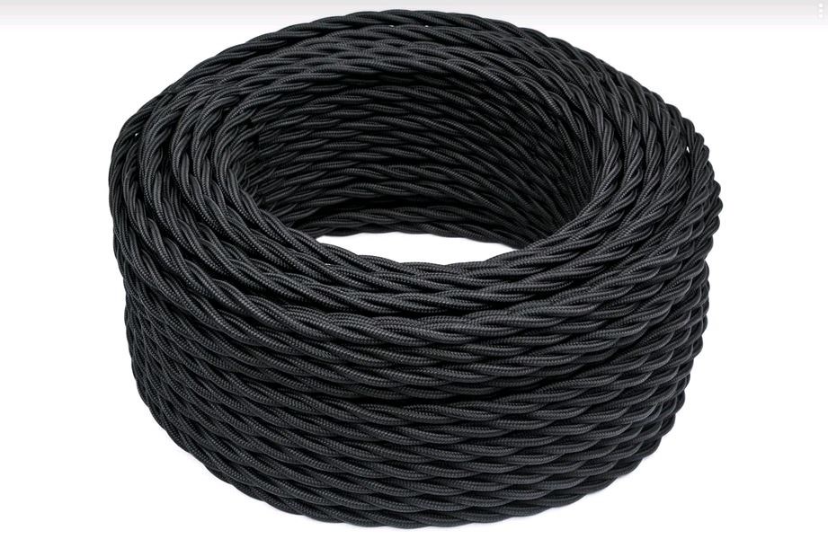 Bironi чёрный матовый витой провод 2*0,75 150м B1-422-73-150