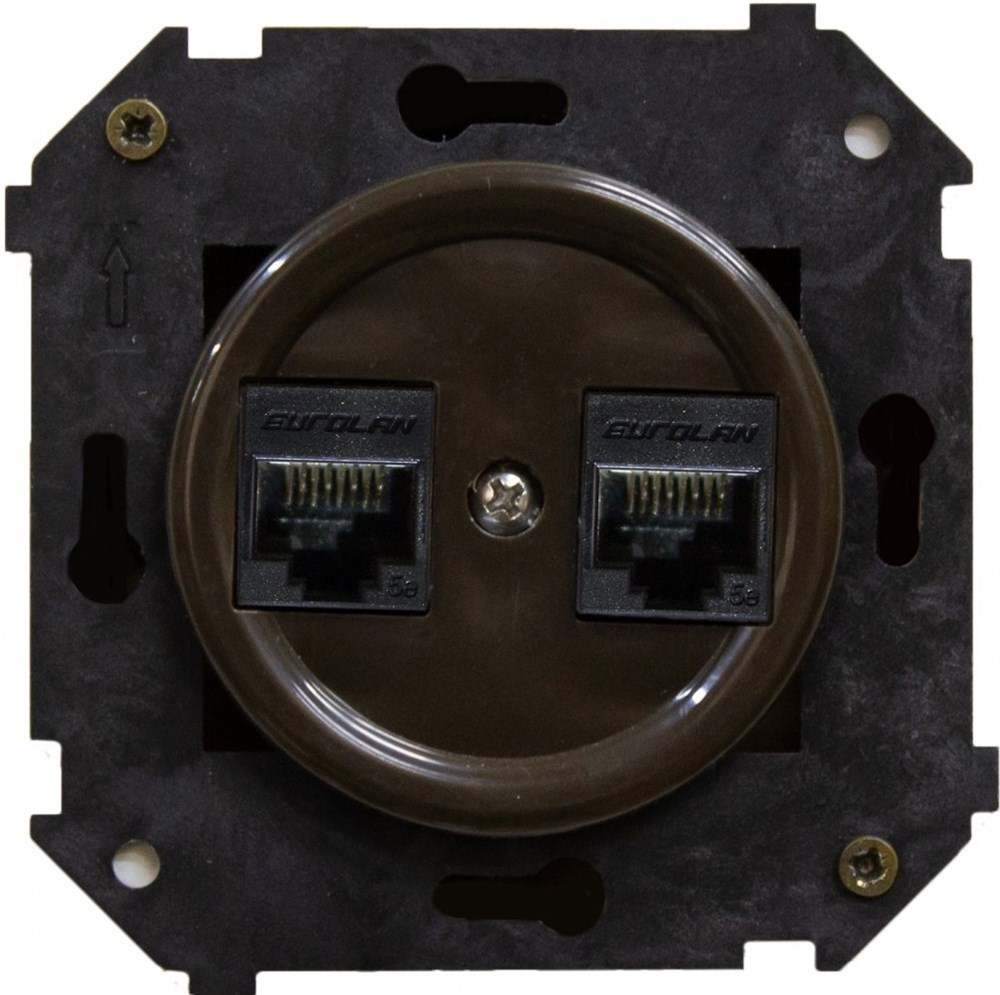 Bironi Шедель пластик коричневый розетка 2-ая RJ45 (скрытый монтаж) B3-302-22