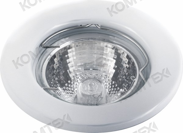 Светильник точечный штампованный неповоротный, максимальная мощность 50W, ГЛН/LED/КЛЛ GU5.3, диаметр 80мм, высота 30мм, вырезное отверстие 55мм, IP20, 12V/220-240V, белый. КОМТЕХ