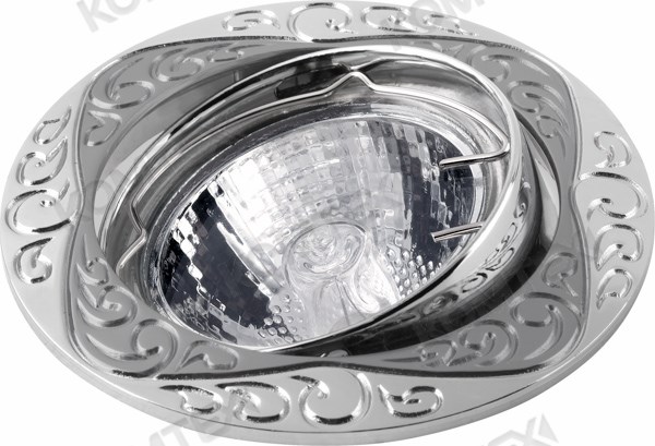 Светильник точечный литой поворотный комбинированный, максимальная мощность 50W, ГЛН/LED/КЛЛ GU5.3, диаметр 80мм, высота 23мм, вырезное отверстие 68мм, IP20, 12V/220-240V, хром/хром матовый/хром. КОМТЕХ