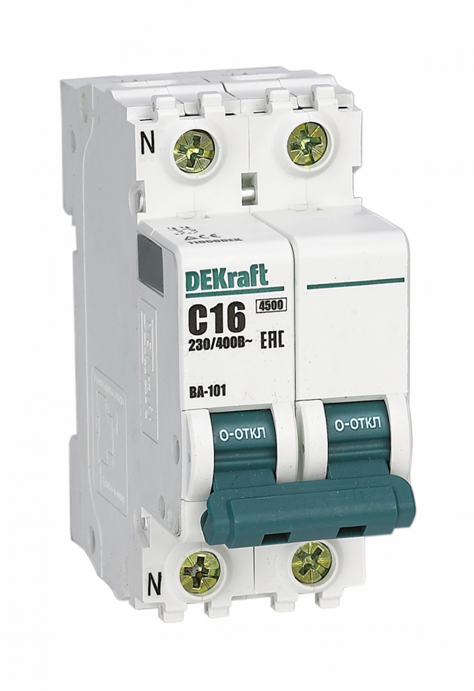 Автоматический выключатель серии ВА-101 DEKraft; 1P+N; номинальный ток 20 А; характеристика D; отключающая способность 4,5 кА. 5 монолитных заклепок повышают прочность корпуса аппарата. Сплошная лицевая панель обеспечивает безопасность эксплуатации аппарата. Боковые каналы охлаждения повышают стабильность работы при высоких температурах окружающей среды. Есть возможность установки дополнительных аксессуаров с левой стороны устройства.
