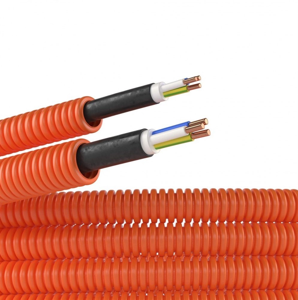 DKC Электротруба ПНД гибкая гофр. д.16мм, цвет оранжевый, с кабелем ВВГнг(А)-LS 3х2,5мм² РЭК "ГОСТ+", 50м 7S91650