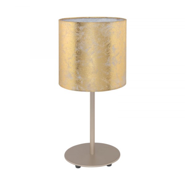 Настольная лампа из коллекции VISERBELLA, выполненная из стали и текстиля, радует своим уютным и мягким образом. Прекрасно подойдет для дополнительной декоративной подсветки гостиной или спальни, а также отлично впишется в интерьеры гостиниц и отелей. Основание цвета шампань с золотым блеском плафона придают изделию лоска, элегантности и изысканности. При включении прибора внутренняя часть подсвечивается и становится заметным узор, имитирующий состаренное покрытие. Это смотрится красиво, эффектно и необычно. Глянцевая белая поверхность внутренней стороны абажура наполняет помещение искристым светом, давая ненавязчивое освещение и наполняя пространство атмосферой комфорта и покоя. Подставка имеет декоративные ножки, что выглядит интересно и оригинально. Лампа оснащена кабельным выключателем. Для данной модели подходит цоколь Е27. Рассчитана на 1 источник освещения, который приобретается отдельно. Габариты: диаметр – 180 мм, высота — 400 мм, диаметр основания — 150 мм. Наличие 2 класса защиты свидетельствует о том, что прибор имеет усиленную (двойную) изоляцию от поражения электрическим током.