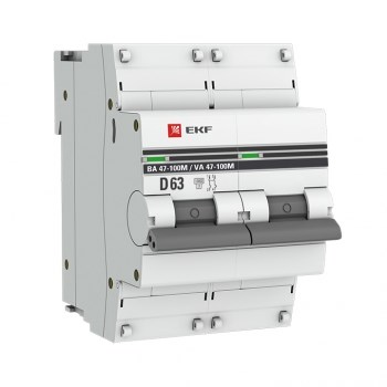 EKF PROxima ВА 47-100M Автоматический выключатель (D) 2P 63А 10kA с электромагнитным расцепителем mcb47100m-2-63D-pro