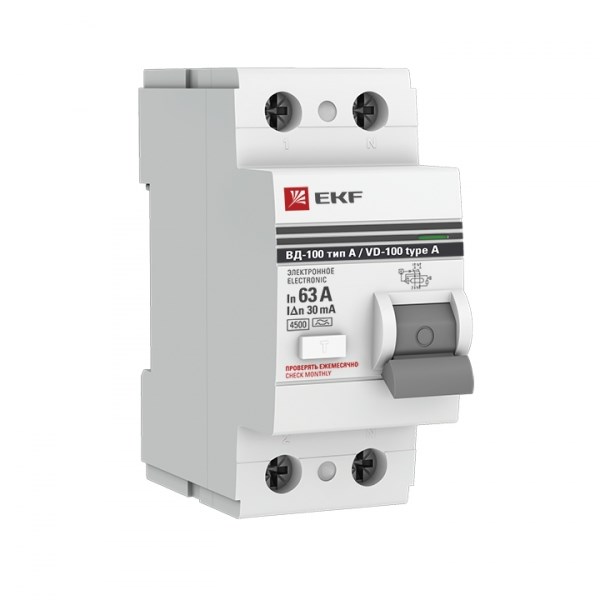 EKF PROxima ВД-100 УЗО 2P 63А/30мА (A) электромеханическое elcb-2-63-30-e-a-pro