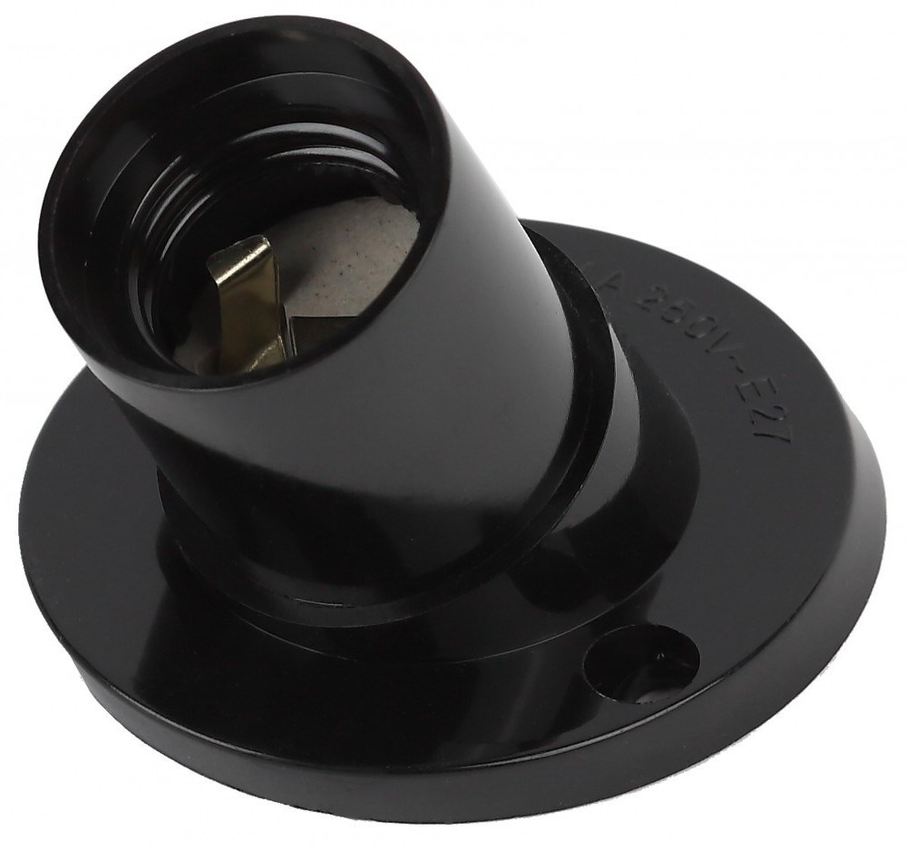 бакелитовый патрон настенный; способен выдерживать высокие температуры (до 300 градусов), обладает высокими электроизоляционными и антикоррозийными свойствами, не подвержен воздействию агрессивных сред; удобное подключение провода к контактной группе с помощью зажимных винтов
