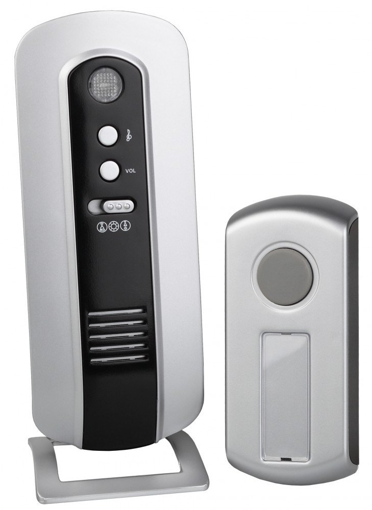 Беспроводной электрический дверной звонок с возможностью подключения до 4 дополнительных звонков. Прост в установке и имеет особые функции - выбор любой из 6 встроенных мелодий, регулировка громкости, световой сигнал с возможностью изменения яркости. Чтобы начать пользоваться этим звонком, достаточно закрепить кнопку двусторонним скотчем на стене в подъезде. Динамик можно разместить в коридоре или взять с собой в комнату/на кухню – если не хотите разбудить кого-то из спящих в соседней комнате домочадцев. Удобно использовать беспроводные звонки ЭРА и на даче – устанавливать кнопку на дверной калитке, а механизм – в доме. И никаких проводов. Радиус действия – до 100 метров. Работает от батареек: 1 шт А23 для кнопки (входит в комплект), 2 шт АА пальчиковые для динамика (в комплект не входят). При среднем использовании (до 20 звонков в день) исправно проработает без замены элементов питания не менее года. Универсальный дизайн делает данный звонок идеальным для интерьера в любом стиле. Аккуратный продуманный внешний вид и приятная упаковка - отличный подарок на новоселье и другие праздники.