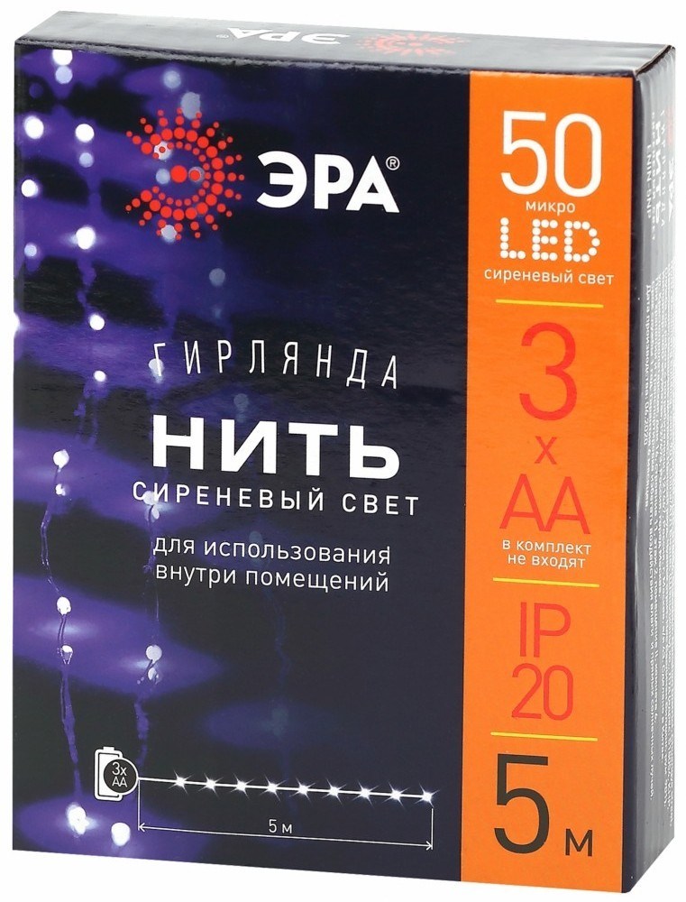 ЭРА ENIN -5NP Гирлянда LED Нить 5 м сиреневый свет, АА (100/2500) Б0047961
