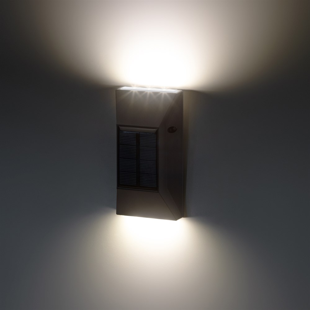 Аккуратный малозаметный настенный светильник ЭРА ERAFS012-07 (арт. Б0057593) - лучшее решение для подсветки ступенек, веранд, архитектурной подсветки. Экономичен и практичен, так как работает от встроенной солнечной батареи. На противоположных сторонах светильника расположено по 3 светодиода, которые формируют 2 ярких световых потока. Размеры светильника фасадного: 13х7,3х3 см. Особо эффектно смотрится в составе группы из нескольких штук. Встроенная в корпус солнечная батарея накапливает энергию в течение светового для позволяет экономить электричество. Беспроводной светильник можно разместить на внешнюю стену любой загородной постройки. Эта всепогодная фасадная подсветка автоматически включается с наступлением вечера и работает, пока не кончится заряд – около 8 часов. Подзаряжается даже в пасмурную погоду.