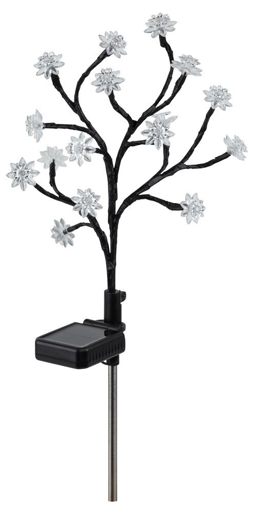 Светильник уличный ЭРА ERASF22-60 "Сакура" (арт. Б0057655) на солнечной батарее - светящееся дерево высотой 32 см для оформления сада и любой загородной территории. На каждой ветке - цветок со светодиодом. Разноцветное мягкое свечение создают 16 качественных современных LED-диодов. Такой декоративный светильник уличный продлит радостное весеннее настроение на весь сезон. Солнечная батарея встроена в стойку светильника. В течение всего светового дня компактная и мощная солнечная панель накапливает энергию. С наступлением вечера светодиодное дерево включится самостоятельно и проработает 8 часов до следующей подзарядки.