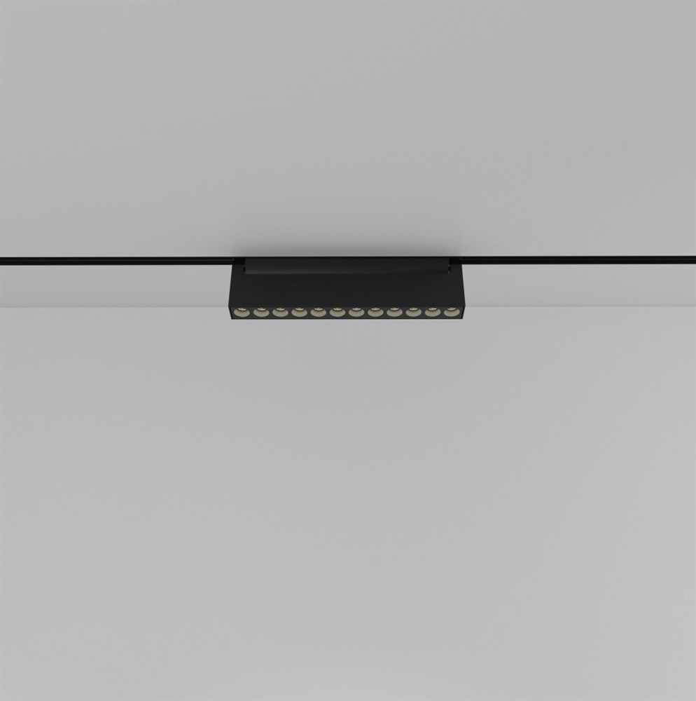 Магнитный трековый светильник TRM20-4-22-12W3K-B. Цветовая температура 3000К, индекс цветопередачи СRI>90. Мощность 12 ватт. Напряжение питания 48V. Материал корпуса алюминий. Световой прибор имеет вращающийся корпус, позволяющий регулировать направления светового потока, и угол рассеивания 30 градусов, что делает его идеальным источником света для создания акцентов в помещении и зонирования пространства.