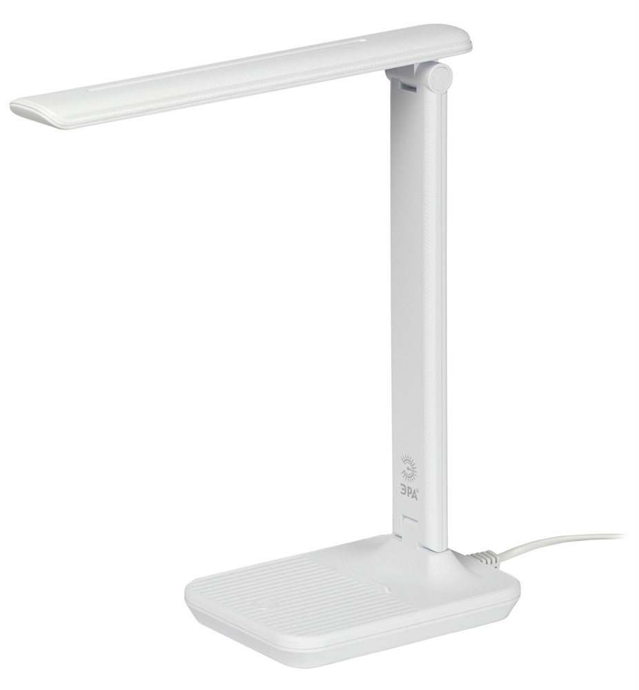 Настольный светильник ЭРА NLED-500-10W-W со светодиодами (LED) в качестве источников света в дизайне "под кожу". Удобная складная модель с сенсорным управлением, возможностью выбора цветовой температуры и плавным диммером для регулировки яркости.