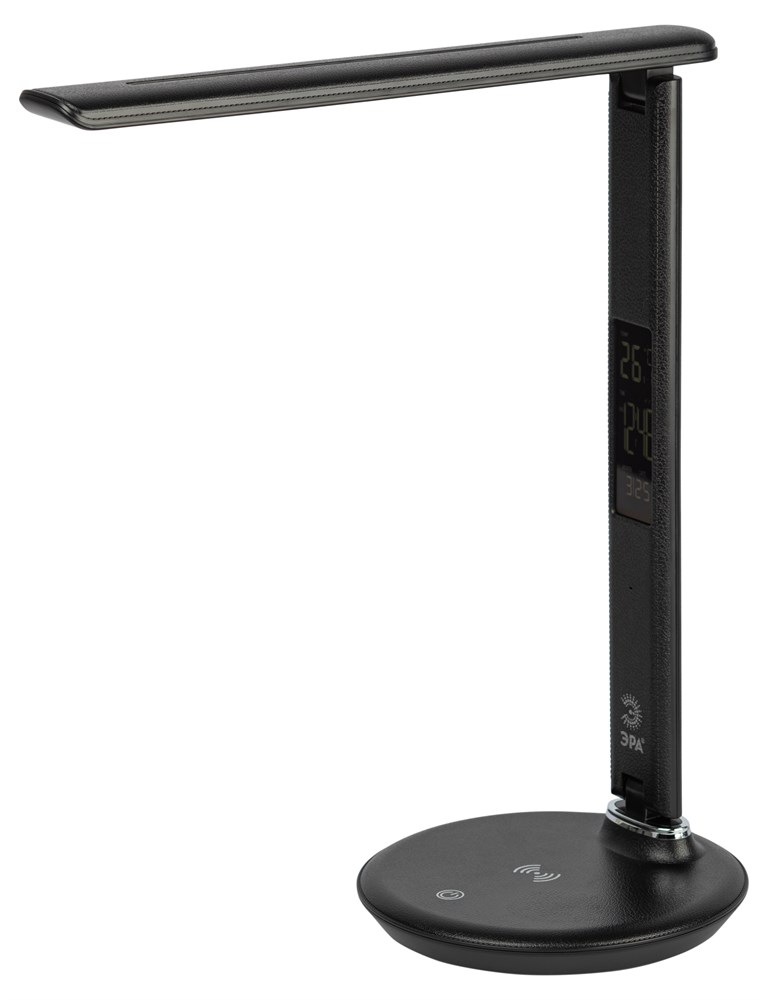 Премиальный складной настольный светильник ЭРА NLED-505 оснащен USB портом и модулем Qi для беспроводной зарядки мобильных устройств, а также ЖК дисплеем с функциями часов, будильника, календаря и термометра. Сенсорное управление обеспечивает выбор цветовой температуры света и плавную регулировку яркости. Поверхность светильника тактильно приятной фактуры под кожу. Направление света регулируется за счет наклона стойки и плафона до 180°. Поставляется в индивидуальной картонной коробке.